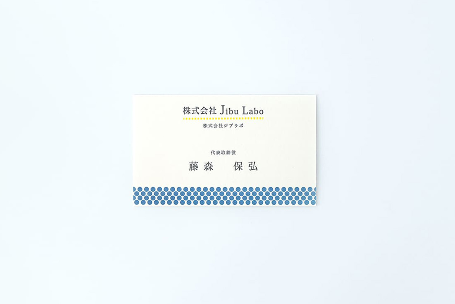 ドット柄の活版印刷がとても可愛らしいお名刺。活版印刷は文字の印刷だけでなく、このようなドットなどの柄物も制作可能です。版を自由に制作できますので、お好きな形やパターン柄を楽しんでいただけます。