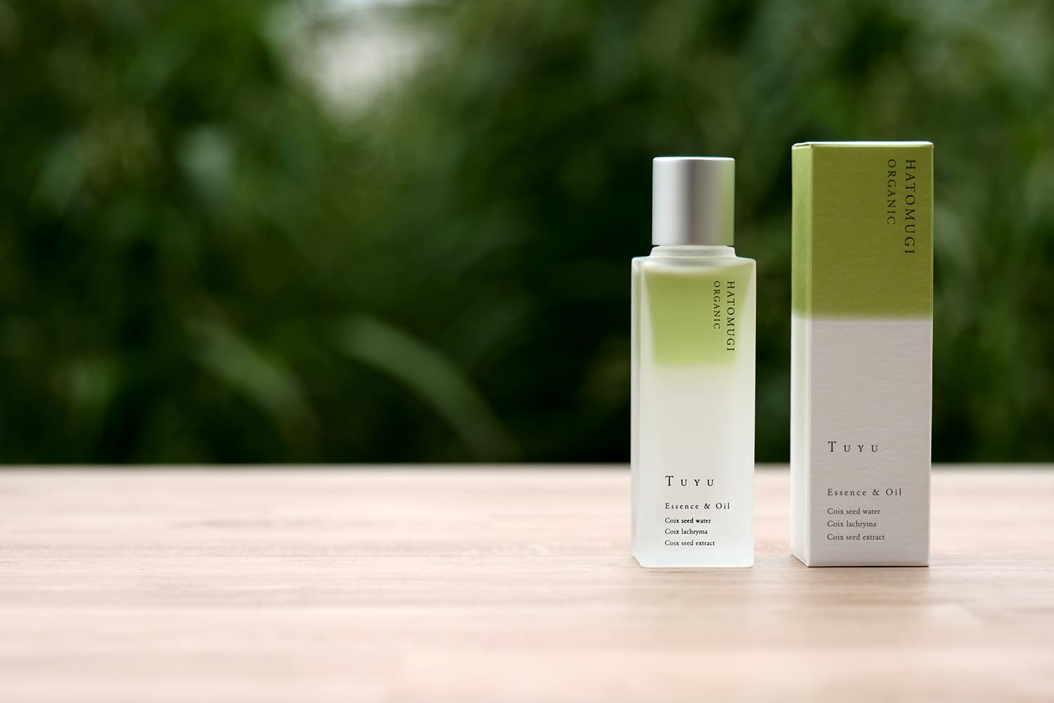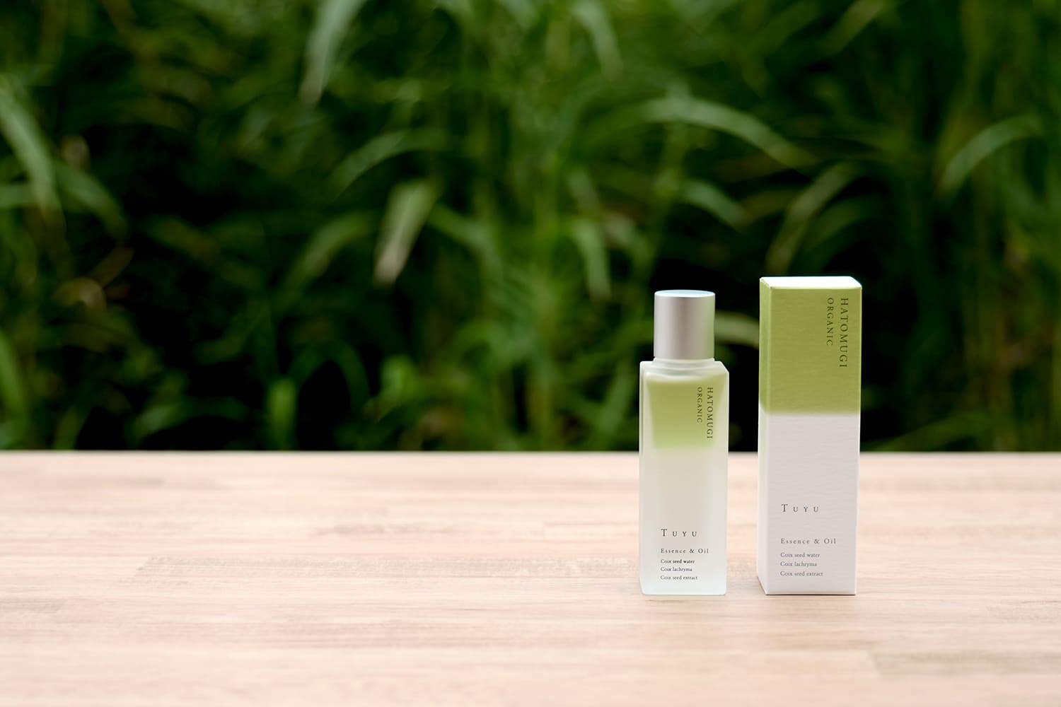 その肌にハトムギエキスが浸透する様をハトムギ色のグリーンのグラデーションをパッケージに施し