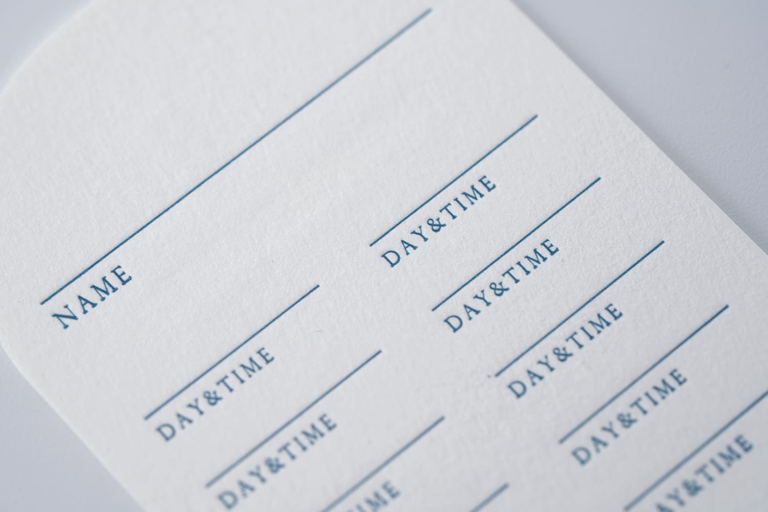 洗練されたデザインとこだわりの活版印刷で、10年後もその美しさが損なわれない診察券です。