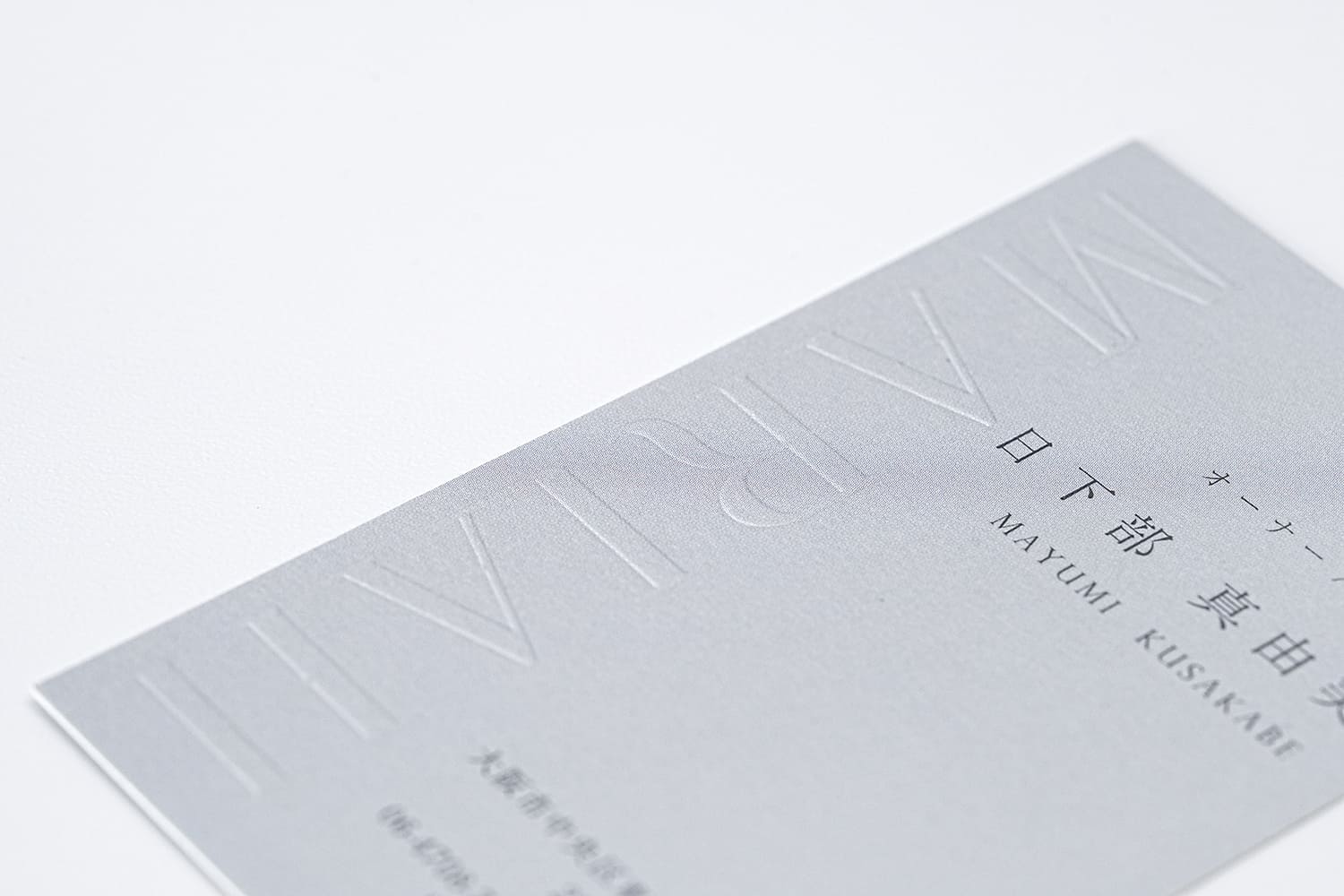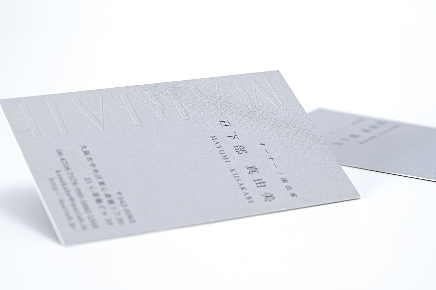 無色エンボスがスタイリッシュな、ブライダル演出家の名刺。