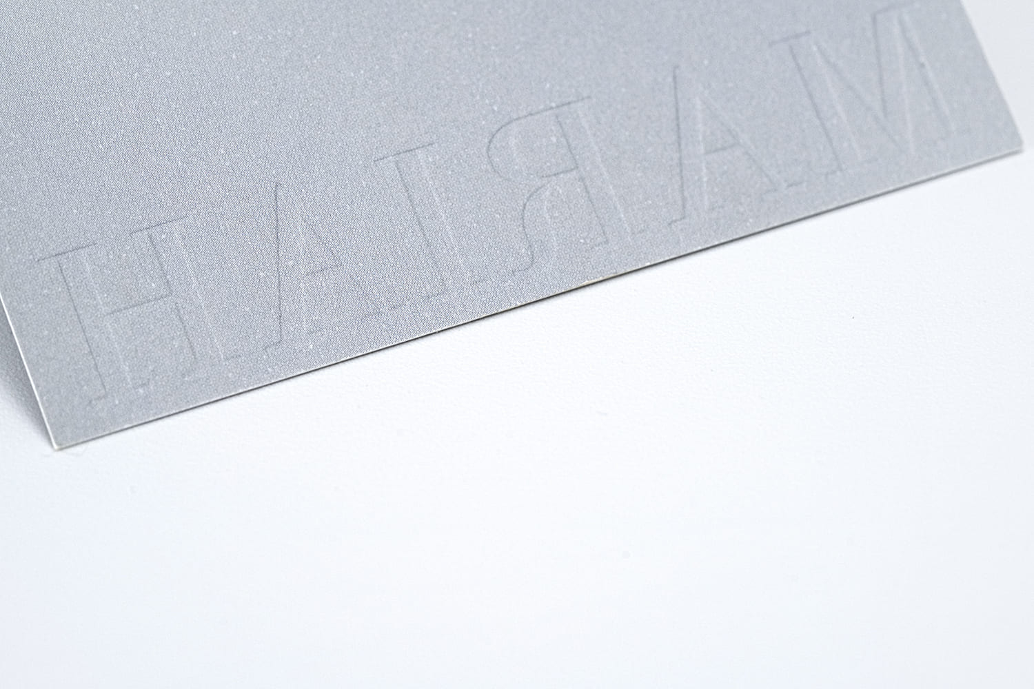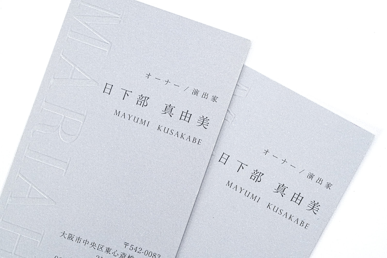 ブライダルに関するあらゆるイベントのプロデュースを手がける、演出家様のお名刺。縦一杯に無色エンボスで印字されたロゴマークが洗練されておりスタイリッシュ。ブライダルに関わるお仕事なので、お客様の心を読み取る繊細さや誠実さを表現しました。演出家としての格を感じられる特別なお名刺です。