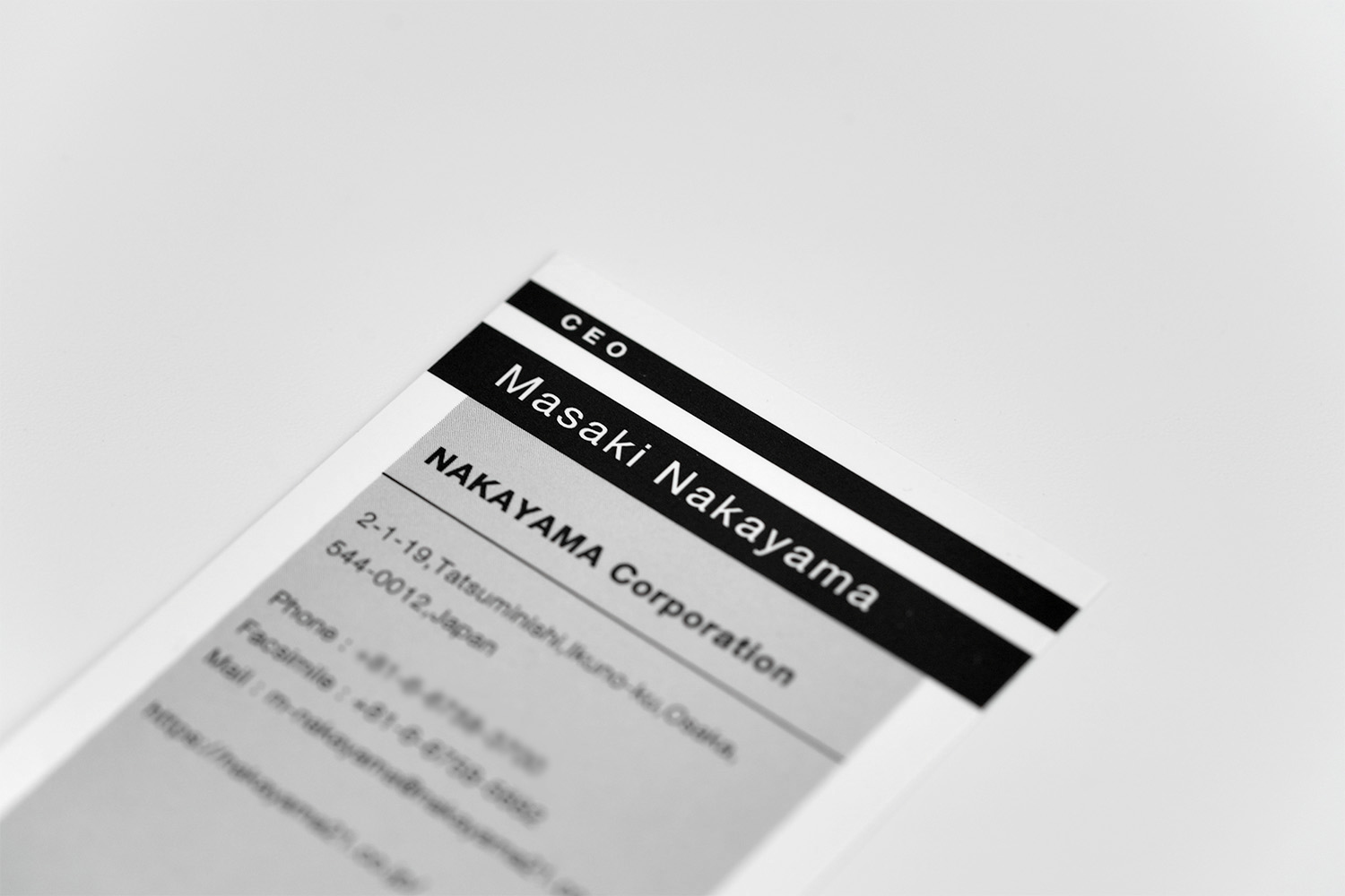 1937年創業。約1世紀にわたり世界一の品質でトムソン刃を製造し続けてこられた、株式会社ナカヤマ様のお名刺。銀の箔押し加工が鋭く光り、「世界一の品質」を象徴するかの様な研ぎ澄まされた世界観で作り込まれた一枚です。桶屋の名刺は製造業に携わる方々の哲学、魂、歴史を1枚に凝縮し、シンプルかつ美しく表現致します。