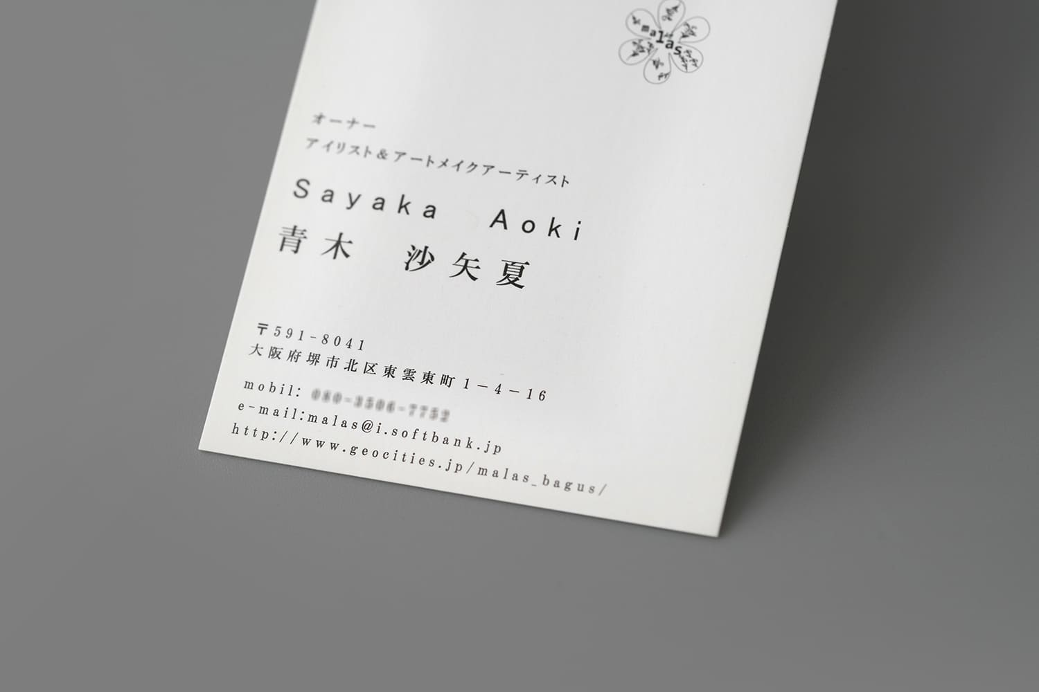 ゆとりある余白を設けることで、細く繊細なロゴマークが活きるよう設計いたしました。フォントサイズにも細心の注意を払い、抜け感のある美しいお名刺です。ロゴのかわいらしさは残しつつ、女性らしい品のよさも漂う仕上がりとなりました。