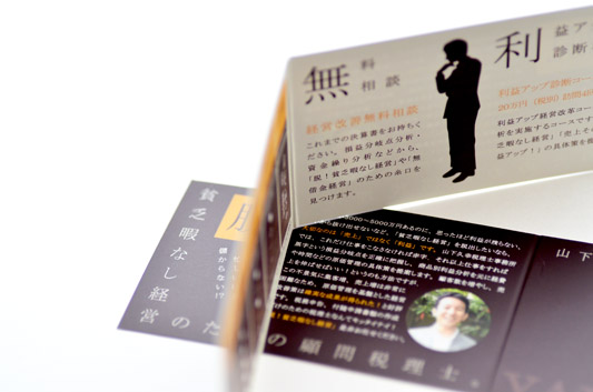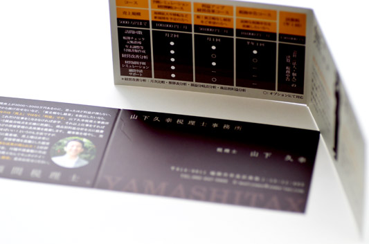 デザイン仕様: マットコート紙 ラミネート加工 二つ折り加工