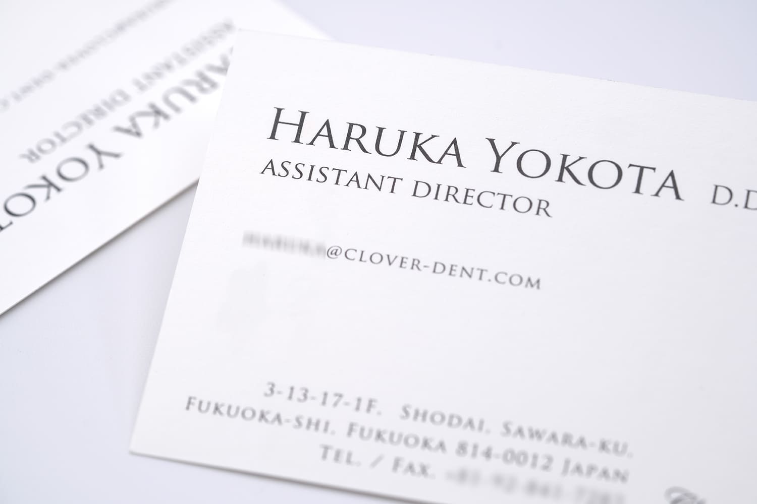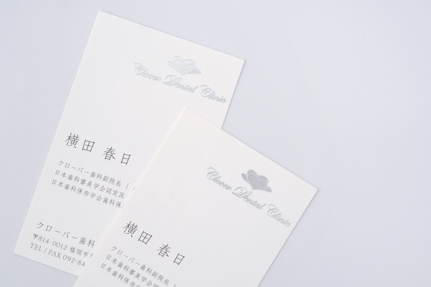 女医様のお名刺をエレガントに引き立てる、マットで上質な銀の箔押し加工。上品で落ち着いたデザインは見る者に安心感を与え、とても穏やかで好印象です。品格漂う控えめな銀箔をワンポイントで取り入れることで、名刺は新たな輝きを放ちます。 優美な空気感を纏いながら、凛とした強さをも秘めた女医様のお名刺。上品さと真摯に向き合い、美しくも逞しい魅力的な一枚に仕上がりました。