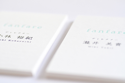 普遍的なデザインに普遍的な印刷方法。視覚的な審美はもちろん、名刺を手に取った時の肌触りや触覚も思考し、デザインしました。特色のブルーと相まって美しい仕上がりです。