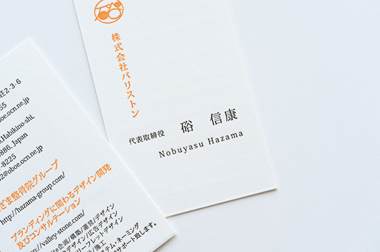 質感のあるクッション紙に黒と相性の良いオレンジをアクセントに使い、活版印刷で仕上げました。活版印刷だからこそ、このシンプルな配色が合います。