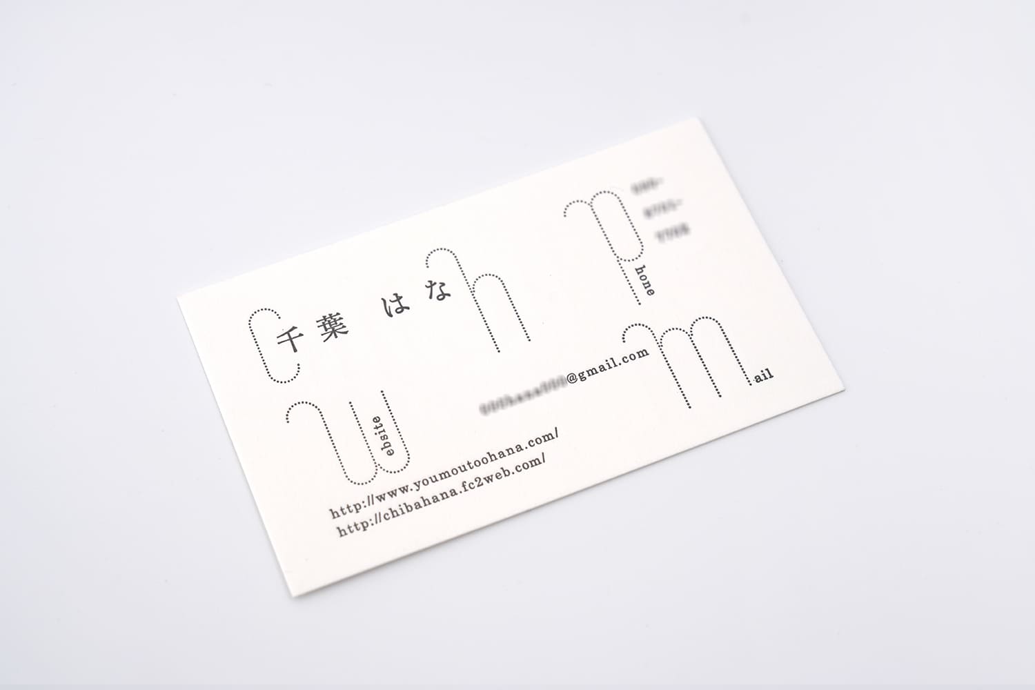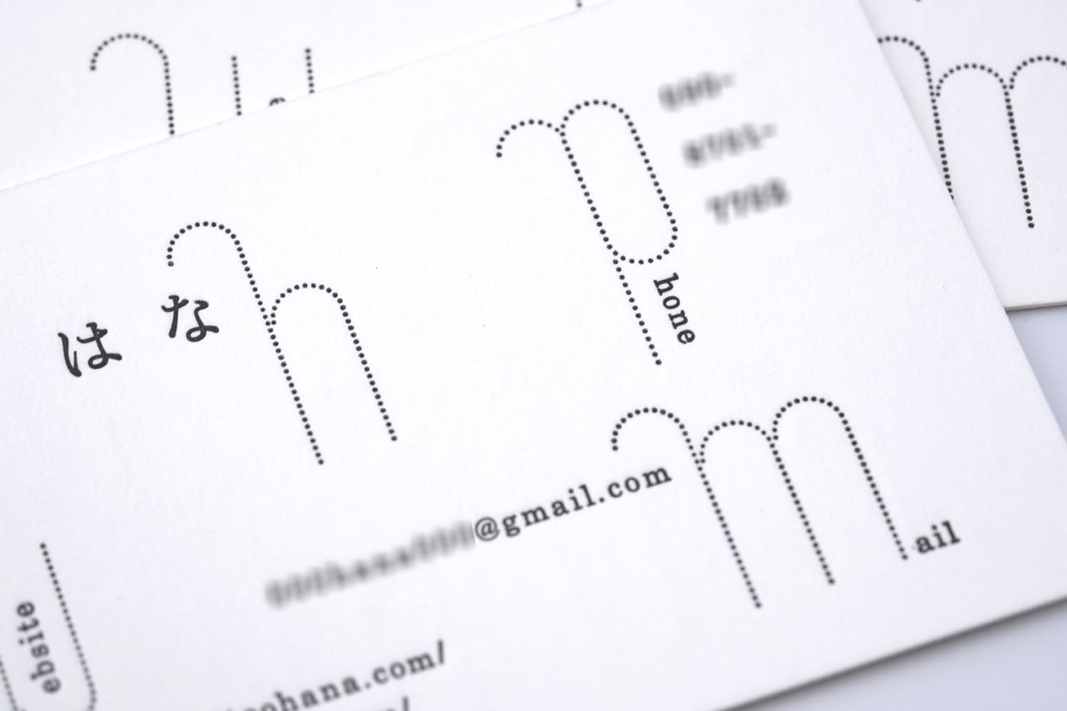 イラストのようにも見えるアルファベットが散りばめられた、音楽アーティスト様のお名刺。一見、散らかっているのかと思いきや絶妙なバランスでまとまっており、ポップでありながら読みやすく美しい。紙面上で軽やかにステップを踏み踊っているような、アーティストらしくて可愛らしい、楽しい気持ちにさせてくれる一枚です。