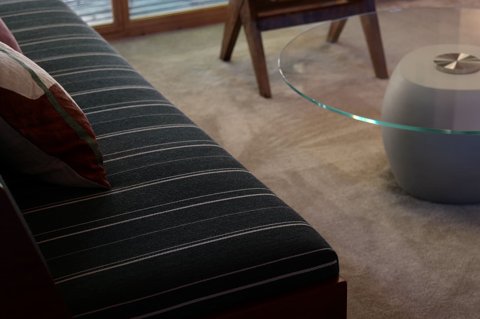 歩いた時の重厚感と静けさを出す為に床に深いパイルのカーペット。
