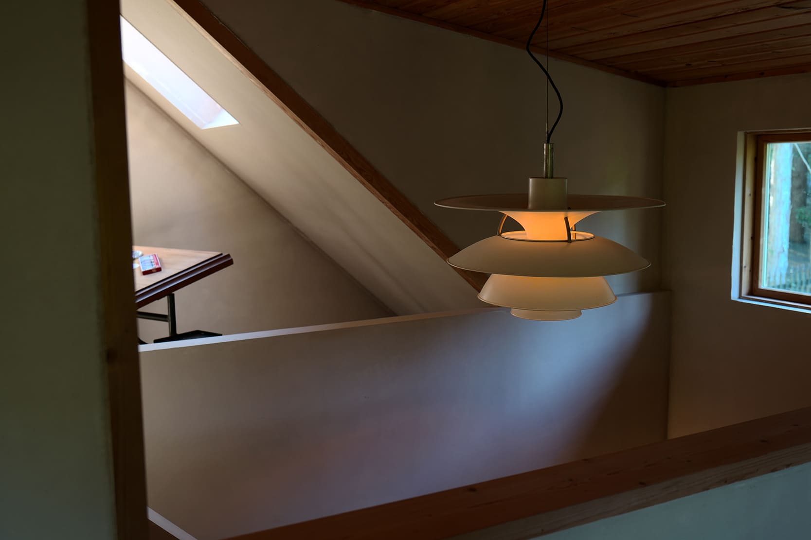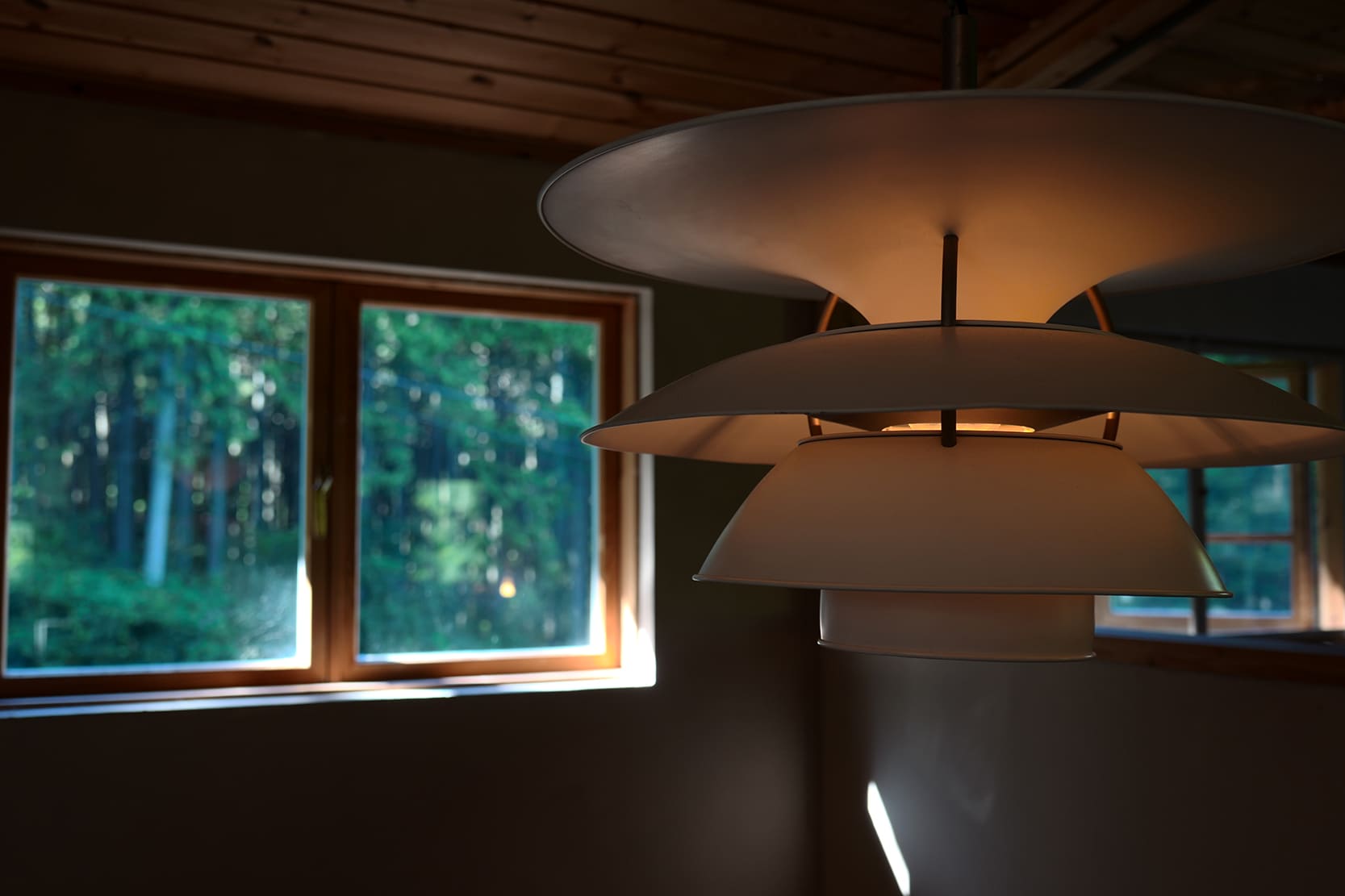 外から見える窓越しのPH6 1/2-6の美しさを感じる為に今のポジションに吊るしている。