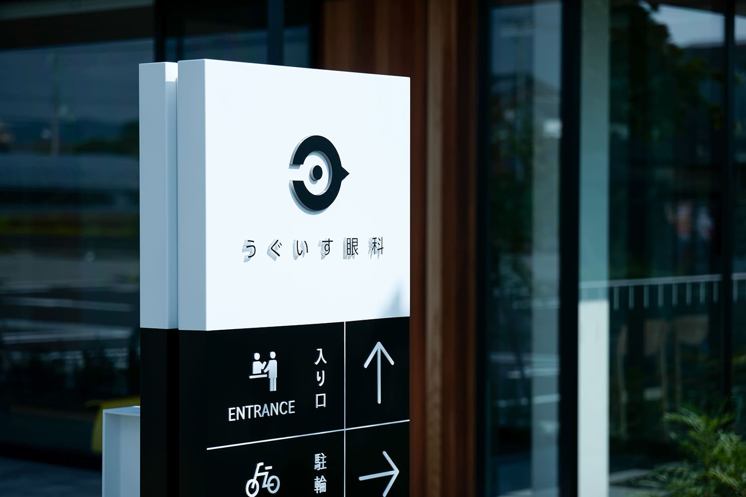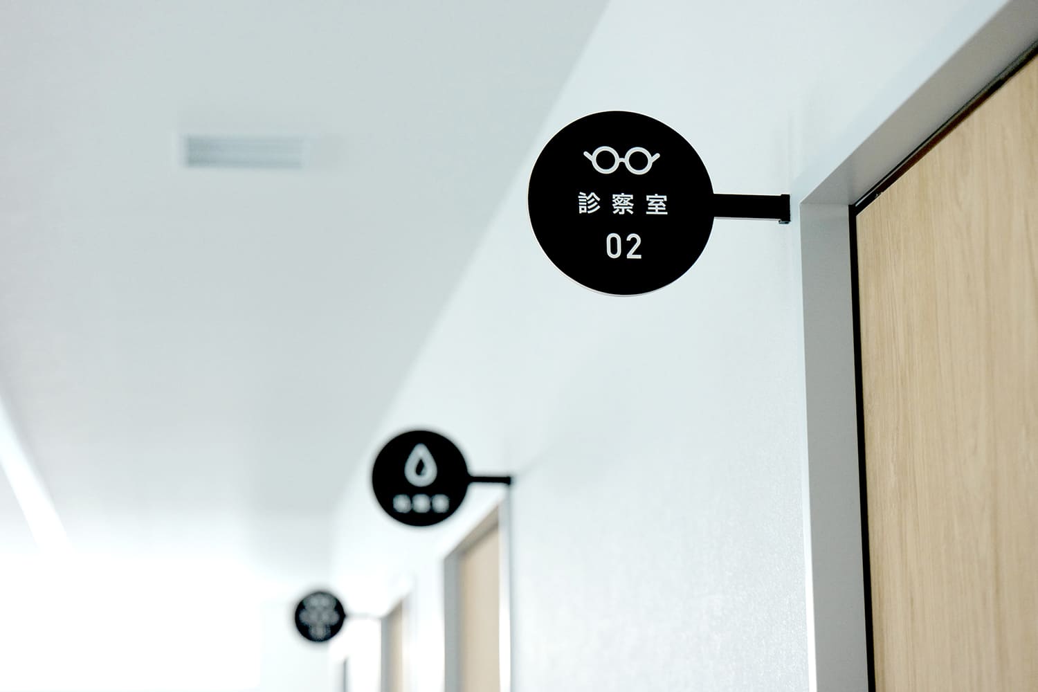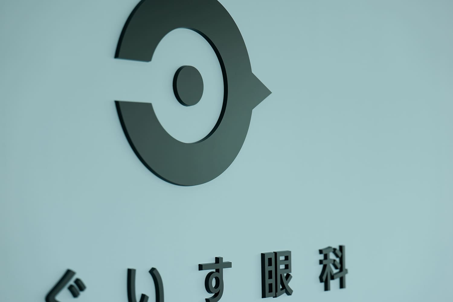 誰もが一度は目にしたことのある視力検査の遮眼子をイメージして「眼科らしい」をデザインを。
