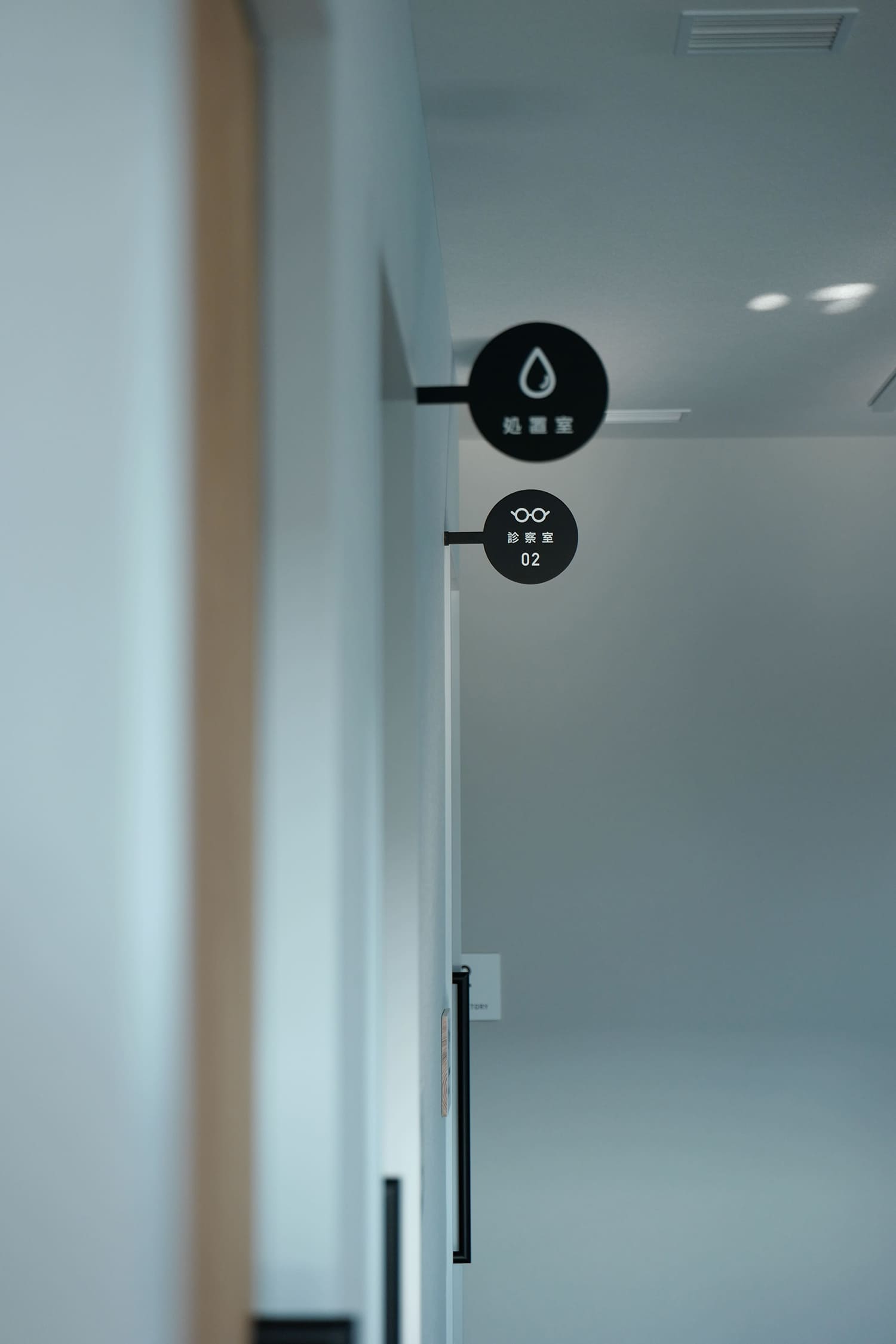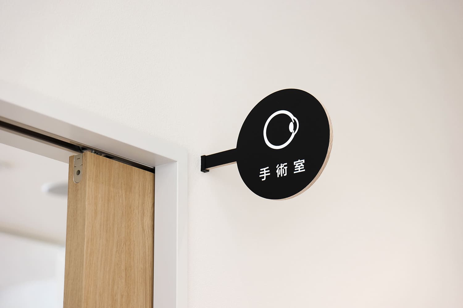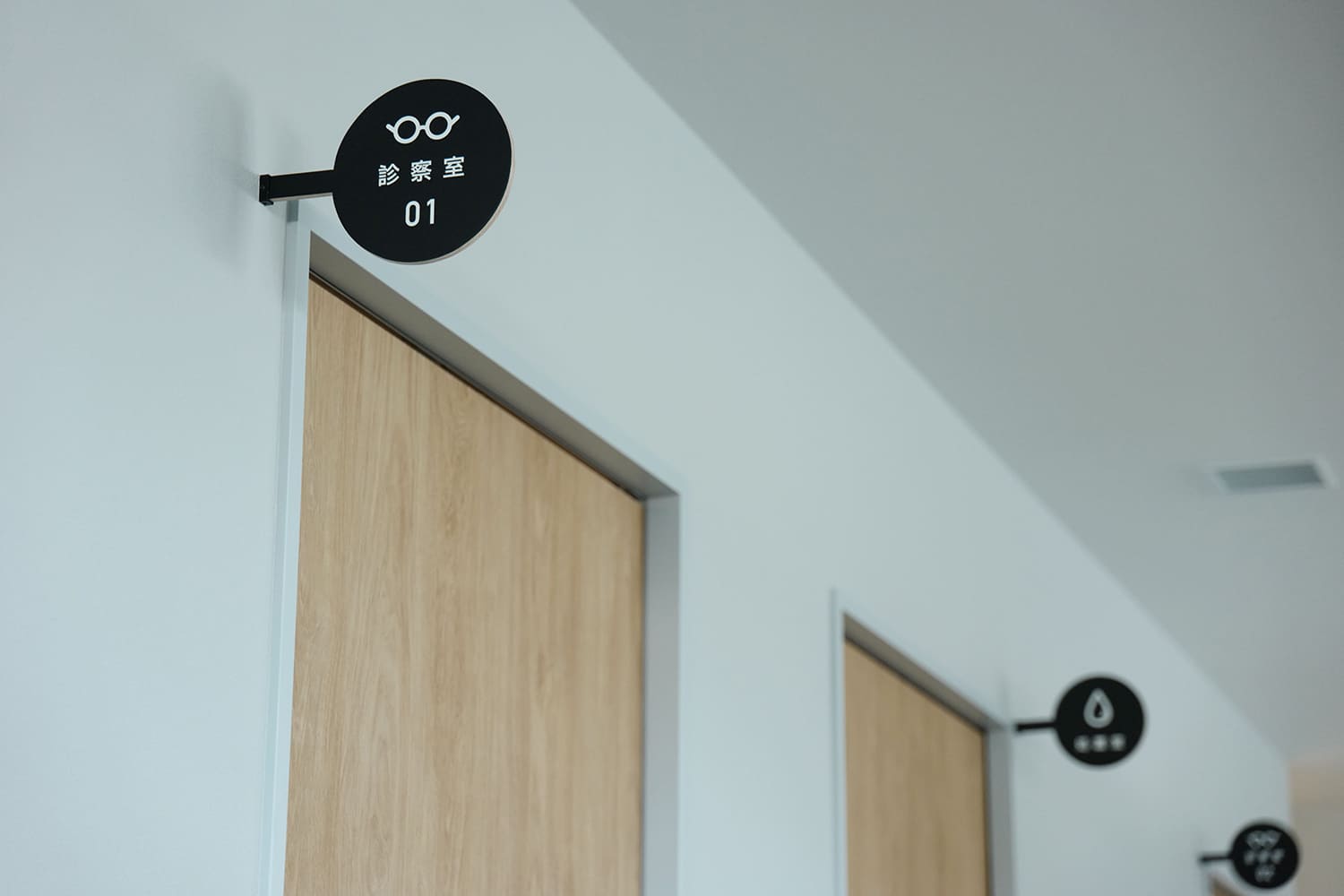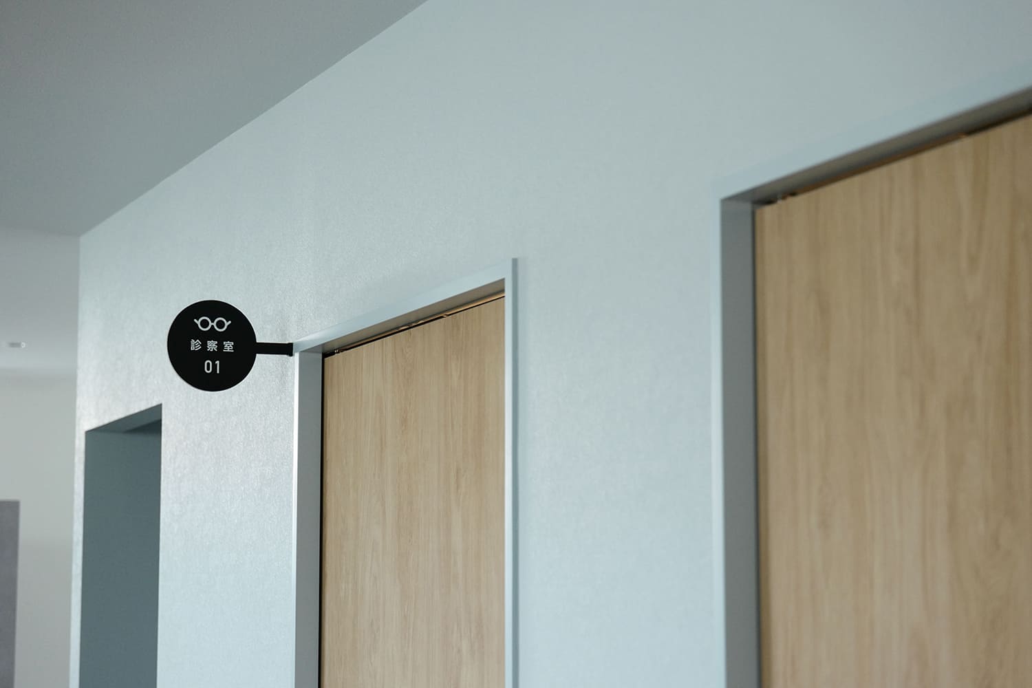誰もが一度は目にしたことのある視力検査の遮眼子をイメージして「眼科らしい」をデザインを。
